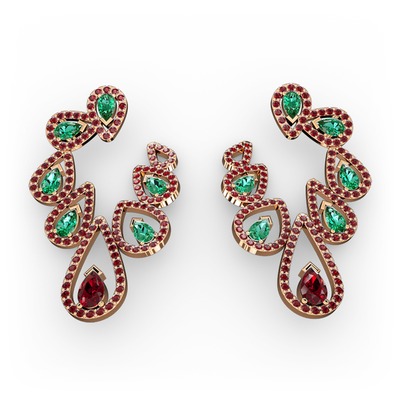 Garnet ve yeşil kuvars 18 ayar rose altın küpe