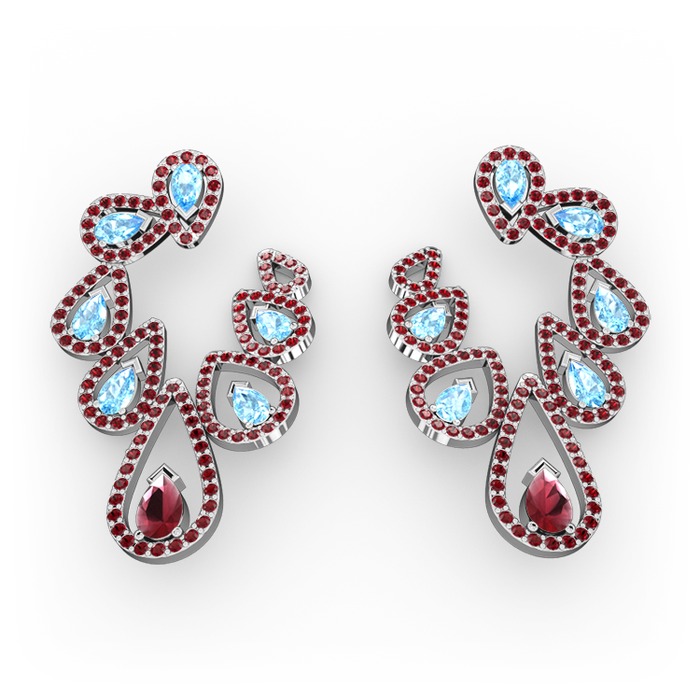 Kök yakut, akuamarin ve garnet 925 ayar gümüş küpe