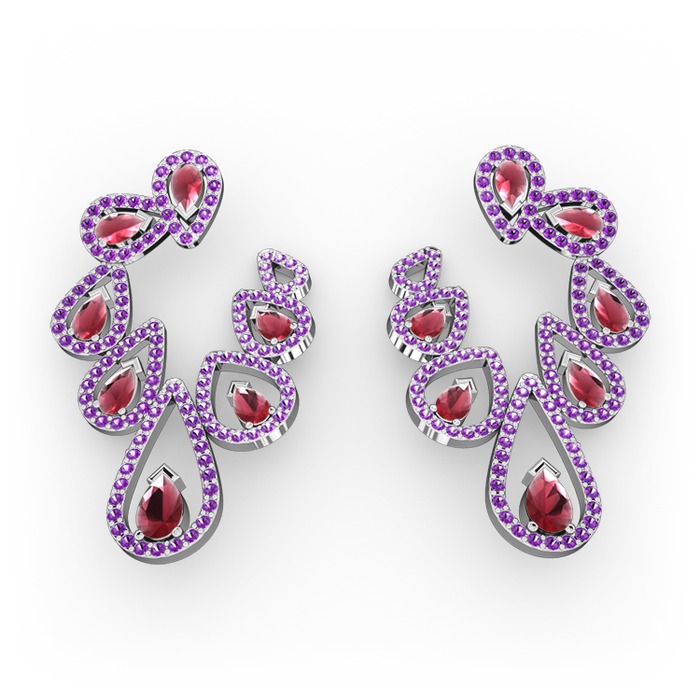 Kök yakut ve ametist 14 ayar beyaz altın küpe