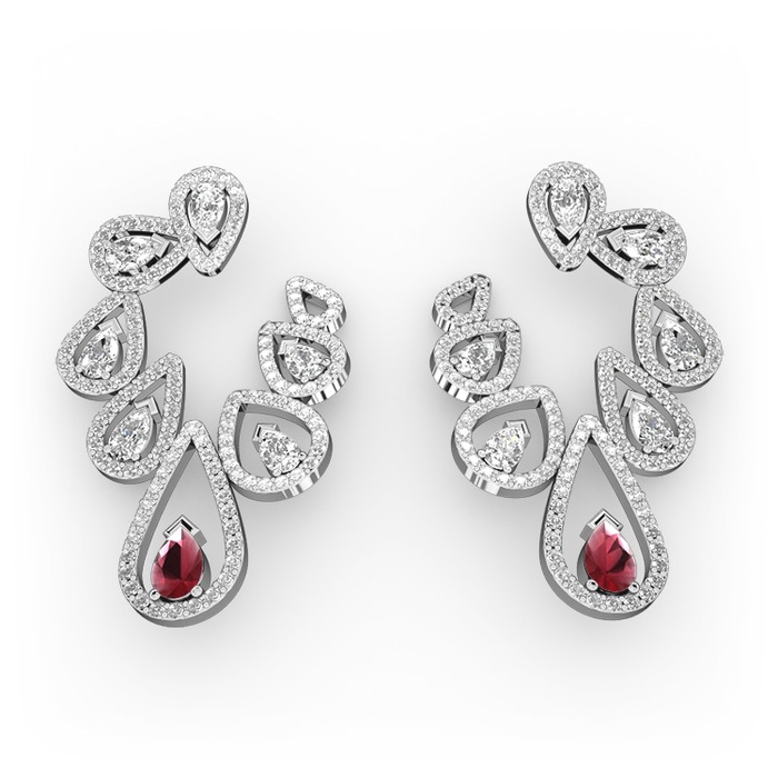 Kök yakut, beyaz zirkon ve swarovski 925 ayar gümüş küpe