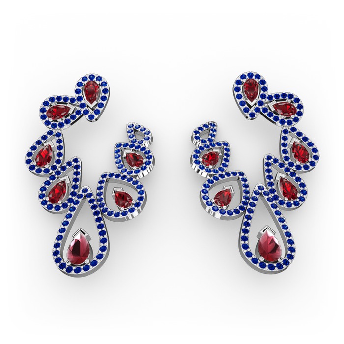 Kök yakut, garnet ve lab safir 18 ayar beyaz altın küpe