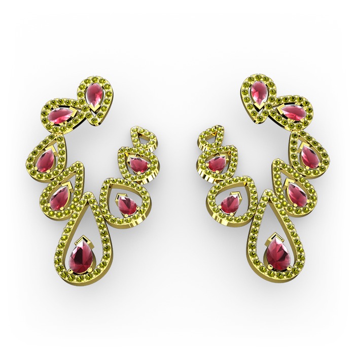 Kök yakut ve peridot 925 ayar altın kaplama gümüş küpe