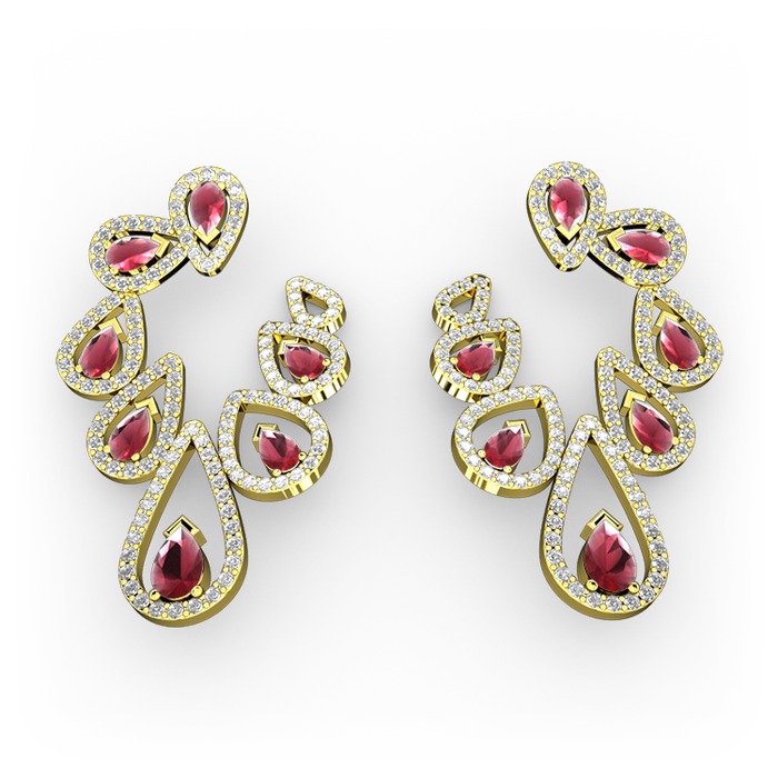 Kök yakut ve pırlanta 8 ayar altın küpe (2.882 karat)