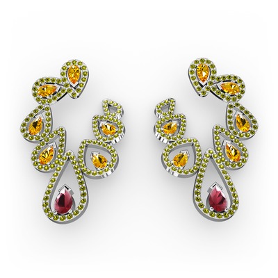 Kök yakut, sitrin ve peridot 18 ayar beyaz altın küpe
