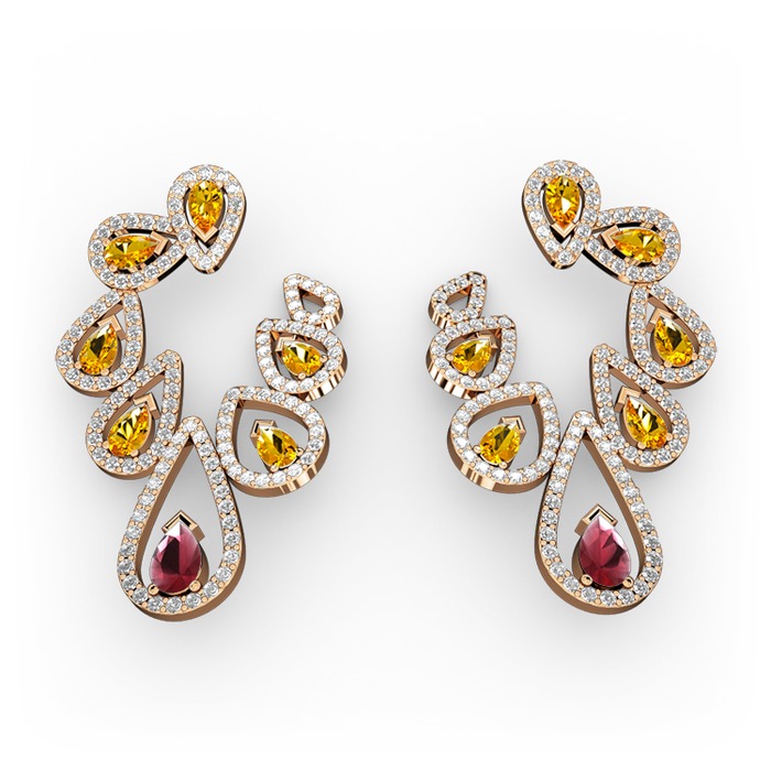 Kök yakut, sitrin ve pırlanta 8 ayar rose altın küpe (2.882 karat)