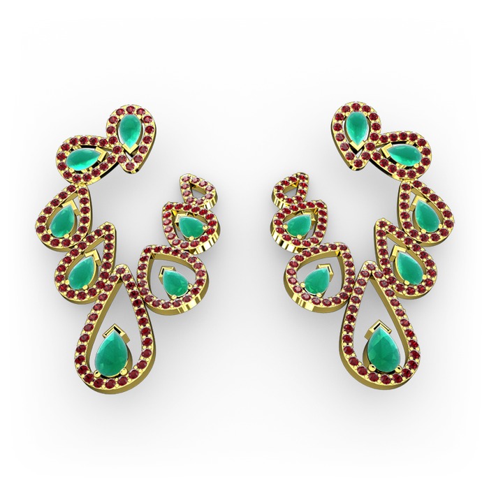 Kök zümrüt ve garnet 8 ayar altın küpe