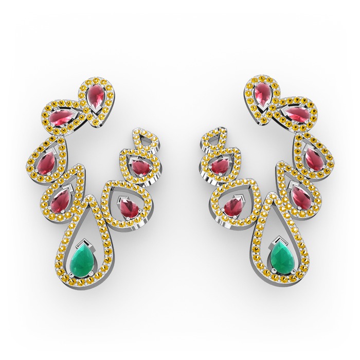 Kök zümrüt, kök yakut ve sitrin 925 ayar gümüş küpe