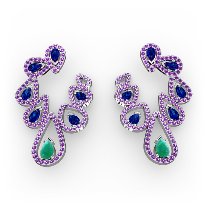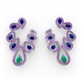 Kök zümrüt, lab safir ve ametist 14 ayar beyaz altın küpe