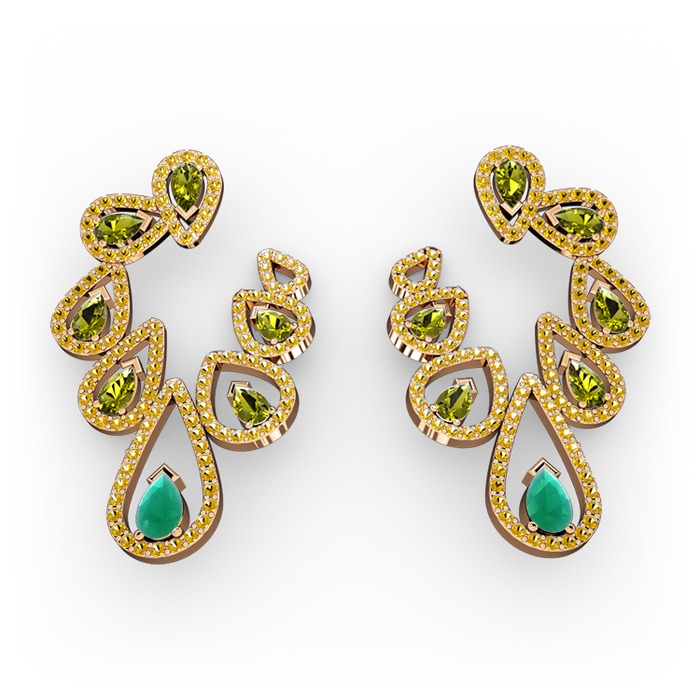 Kök zümrüt, peridot ve sitrin 18 ayar rose altın küpe