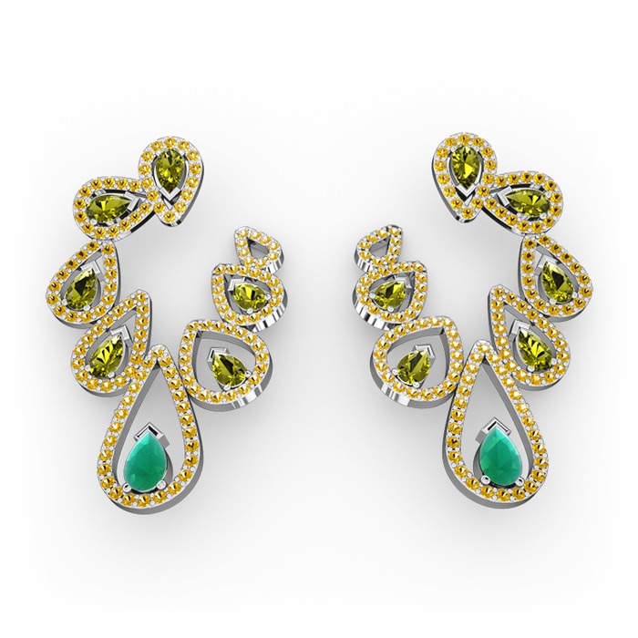 Kök zümrüt, peridot ve sitrin 925 ayar gümüş küpe