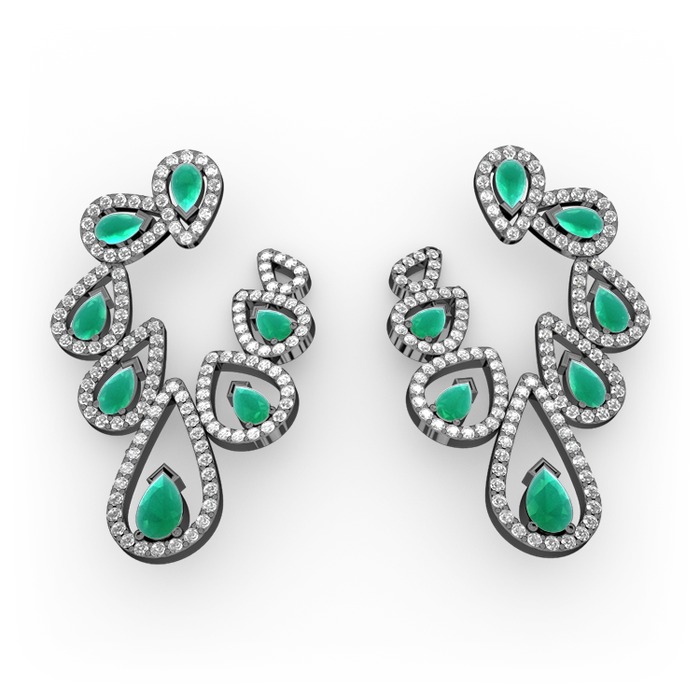 Kök zümrüt ve pırlanta 925 ayar siyah rodyum kaplama gümüş küpe (2.882 karat)