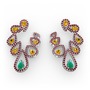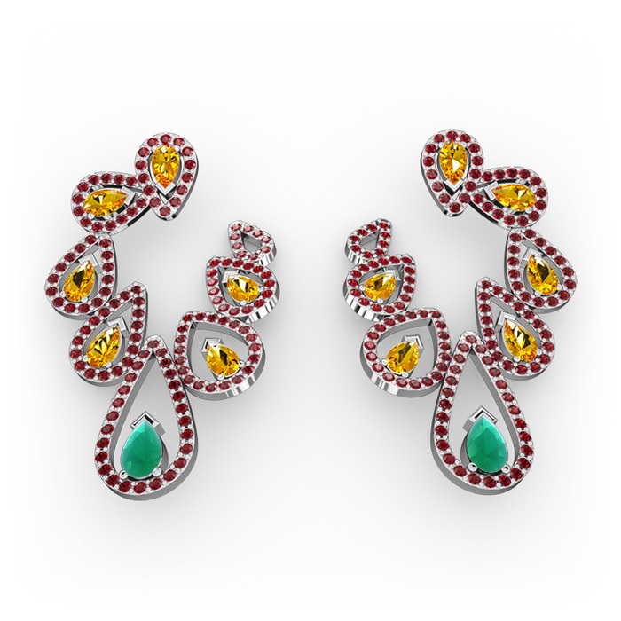 Kök zümrüt, sitrin ve garnet 8 ayar beyaz altın küpe