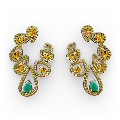 Kök zümrüt, sitrin ve peridot 8 ayar rose altın küpe