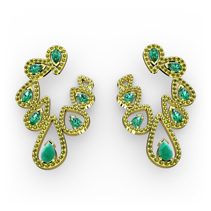 Kök zümrüt, yeşil kuvars ve peridot 925 ayar altın kaplama gümüş küpe