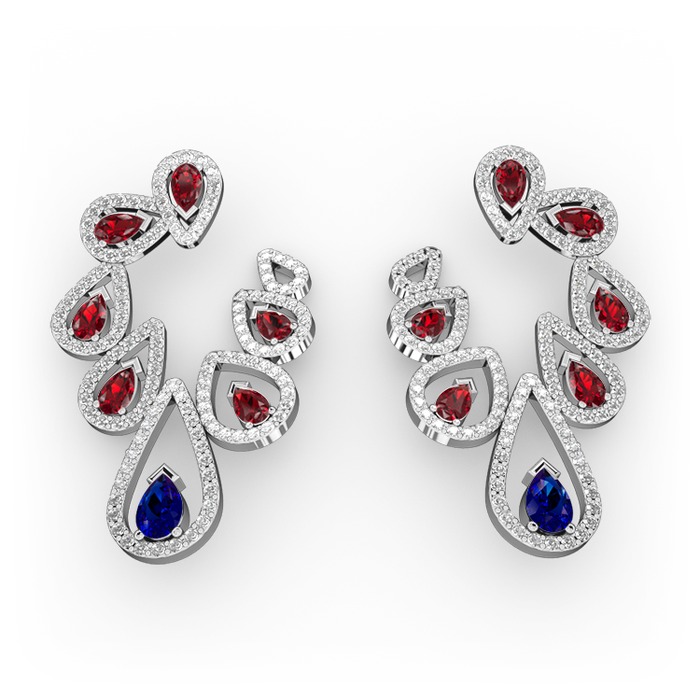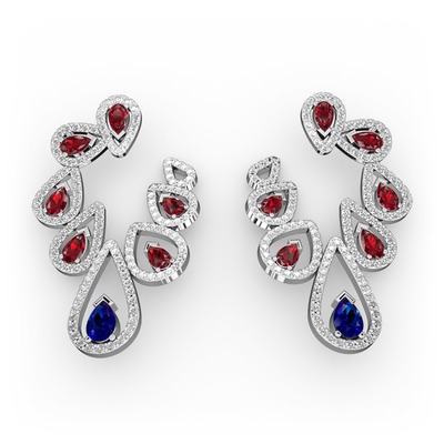 Lab safir, garnet ve swarovski 925 ayar gümüş küpe