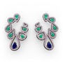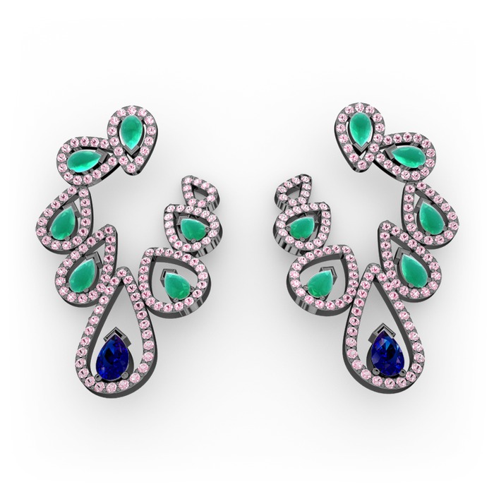 Lab safir, kök zümrüt ve pembe kuvars 925 ayar siyah rodyum kaplama gümüş küpe