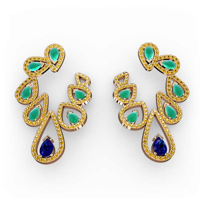 Lab safir, kök zümrüt ve sitrin 18 ayar rose altın küpe