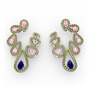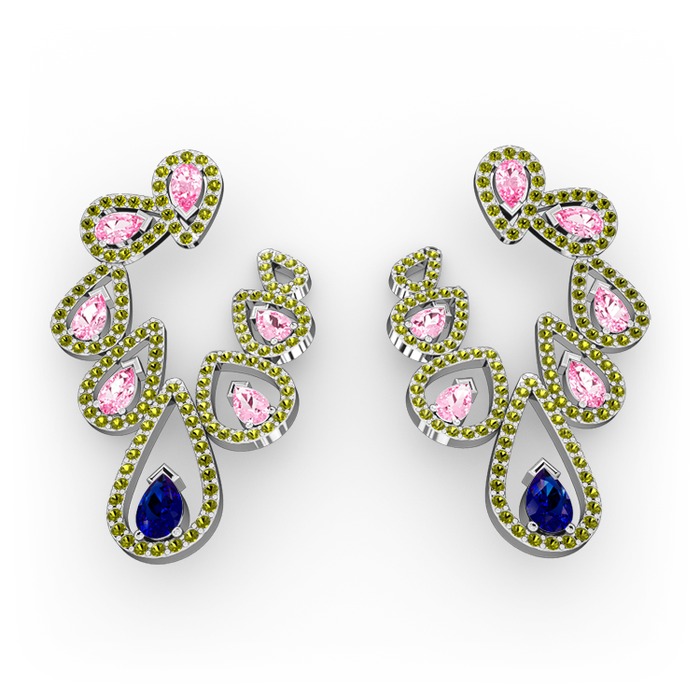 Lab safir, pembe kuvars ve peridot 14 ayar beyaz altın küpe