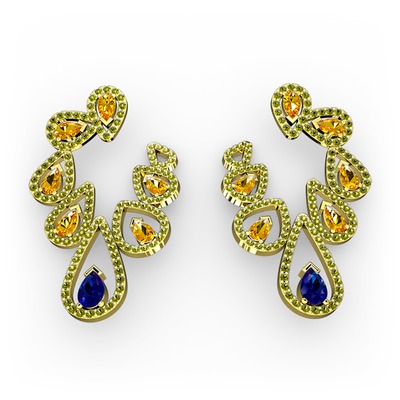 Lab safir, sitrin ve peridot 14 ayar altın küpe