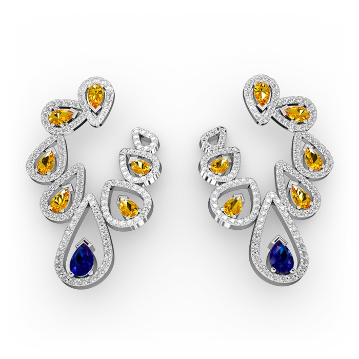 Lab safir, sitrin ve pırlanta 925 ayar gümüş küpe (2.882 karat)