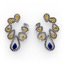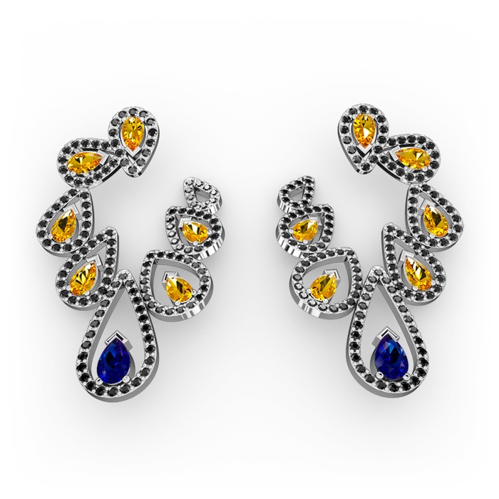 Lab safir, sitrin ve siyah zirkon 8 ayar beyaz altın küpe