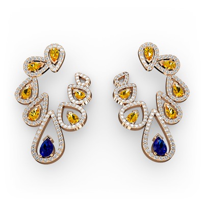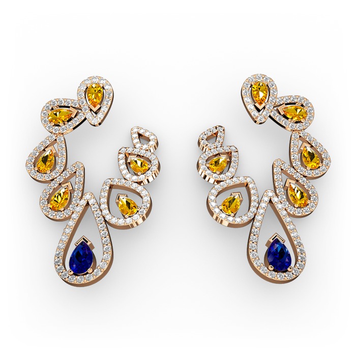 Lab safir, sitrin ve swarovski 8 ayar rose altın küpe