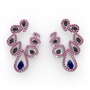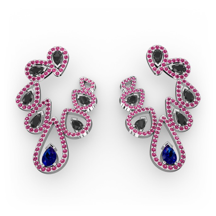 Lab safir, siyah zirkon ve rodolit garnet 14 ayar beyaz altın küpe