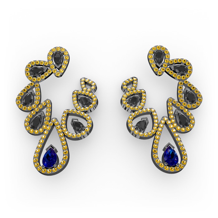 Lab safir, siyah zirkon ve sitrin 925 ayar siyah rodyum kaplama gümüş küpe