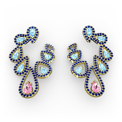 Pembe kuvars, akuamarin ve lab safir 925 ayar altın kaplama gümüş küpe