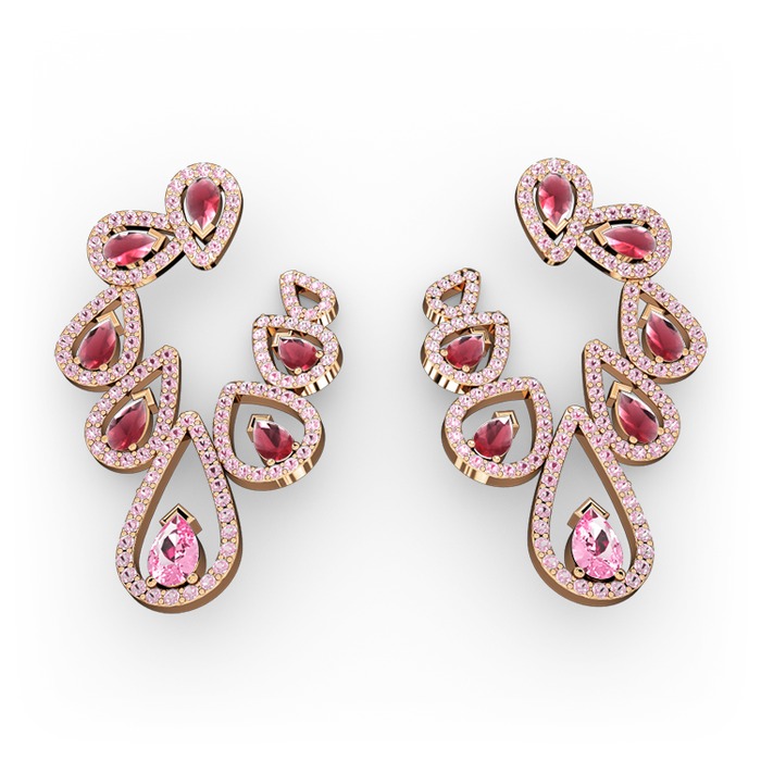 Pembe kuvars ve kök yakut 8 ayar rose altın küpe