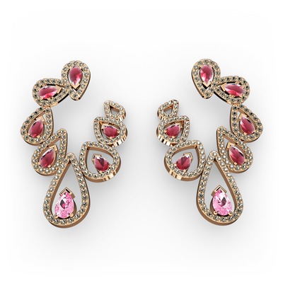 Pembe kuvars, kök yakut ve dumanlı kuvars 8 ayar rose altın küpe