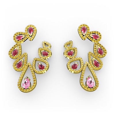 Pembe kuvars, kök yakut ve sitrin 925 ayar altın kaplama gümüş küpe