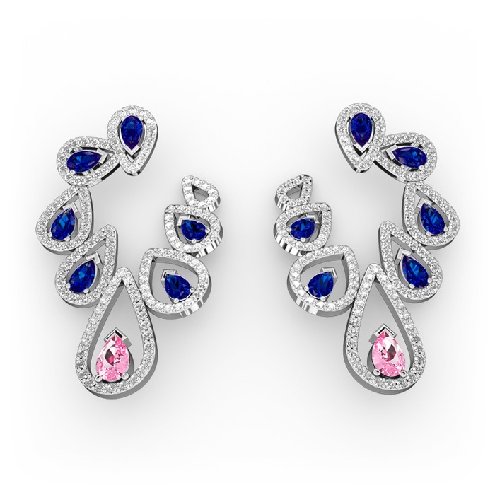 Pembe kuvars, lab safir ve pırlanta 14 ayar beyaz altın küpe (2.882 karat)