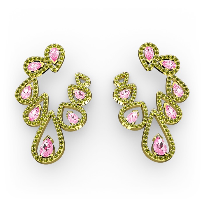Pembe kuvars ve peridot 925 ayar altın kaplama gümüş küpe