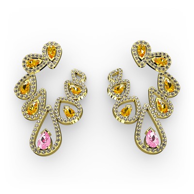 Pembe kuvars, sitrin ve dumanlı kuvars 8 ayar altın küpe