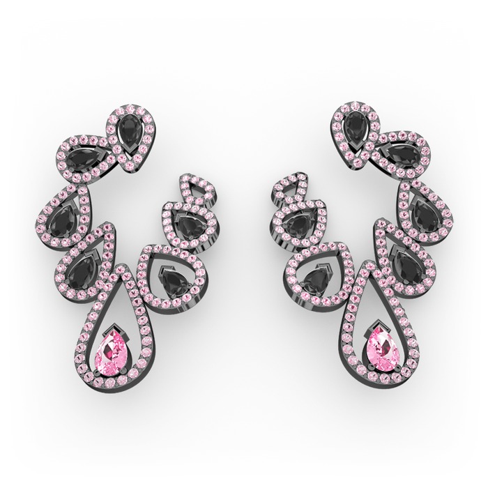 Pembe kuvars ve siyah zirkon 925 ayar siyah rodyum kaplama gümüş küpe