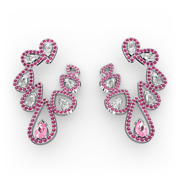 Pembe kuvars, swarovski ve rodolit garnet 925 ayar gümüş küpe