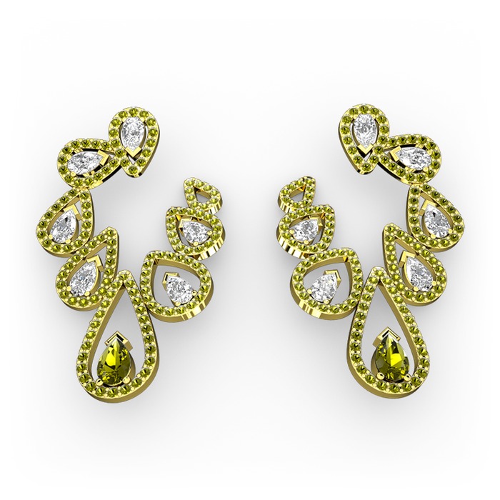 Peridot ve beyaz zirkon 925 ayar altın kaplama gümüş küpe