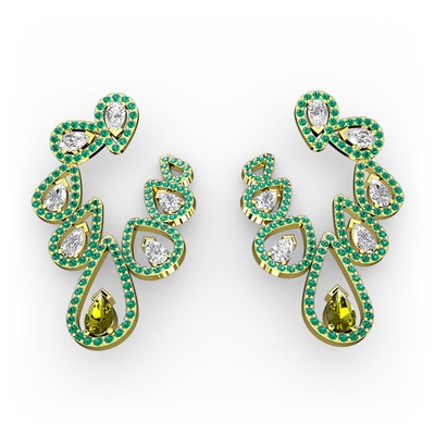 Peridot, beyaz zirkon ve yeşil kuvars 8 ayar altın küpe