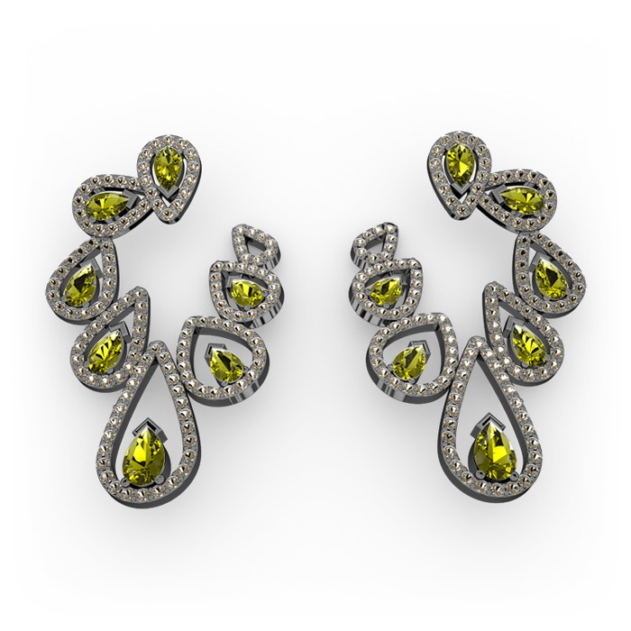 Peridot ve dumanlı kuvars 925 ayar siyah rodyum kaplama gümüş küpe