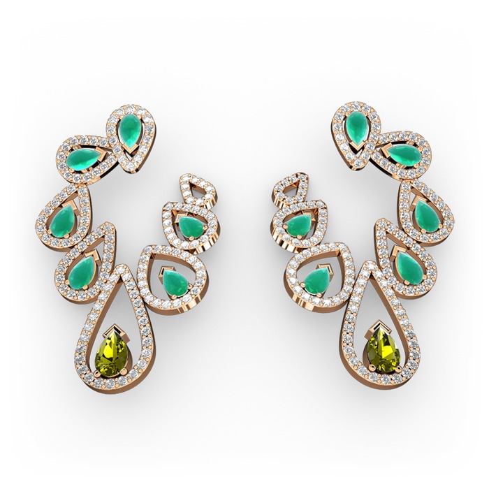 Peridot, kök zümrüt ve pırlanta 925 ayar rose altın kaplama gümüş küpe (2.882 karat)
