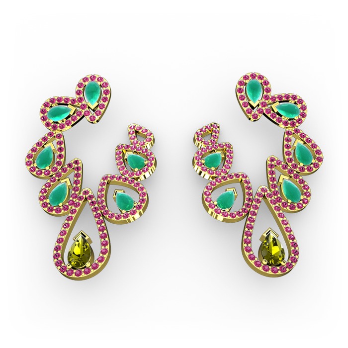 Peridot, kök zümrüt ve rodolit garnet 925 ayar altın kaplama gümüş küpe