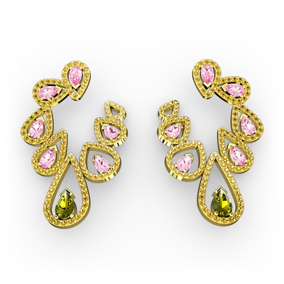 Peridot, pembe kuvars ve sitrin 925 ayar altın kaplama gümüş küpe