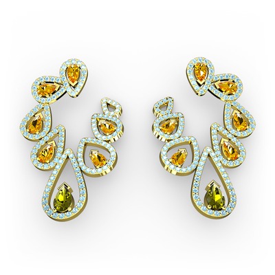 Peridot, sitrin ve akuamarin 8 ayar altın küpe