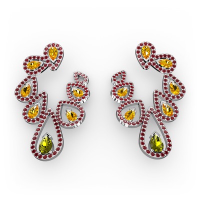 Peridot, sitrin ve garnet 8 ayar beyaz altın küpe