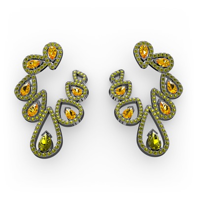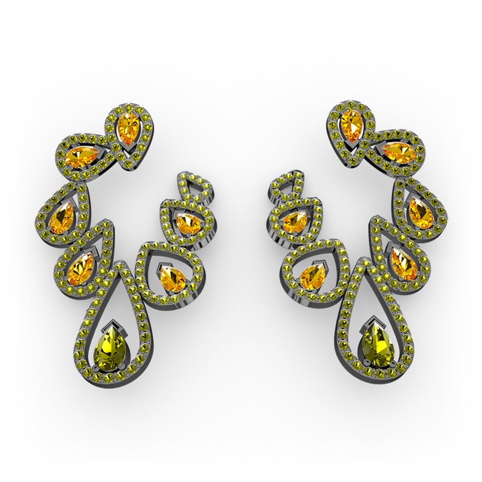 Peridot ve sitrin 925 ayar siyah rodyum kaplama gümüş küpe