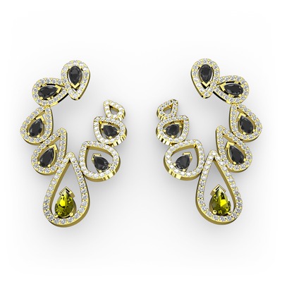 Peridot, siyah zirkon ve swarovski 14 ayar altın küpe