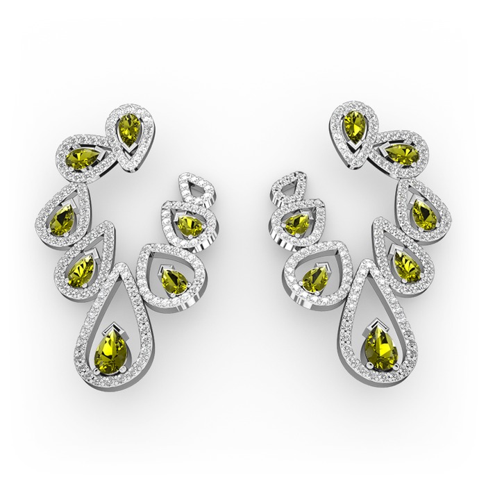Peridot ve swarovski 8 ayar beyaz altın küpe