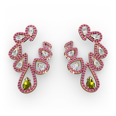 Peridot, swarovski ve rodolit garnet 14 ayar rose altın küpe