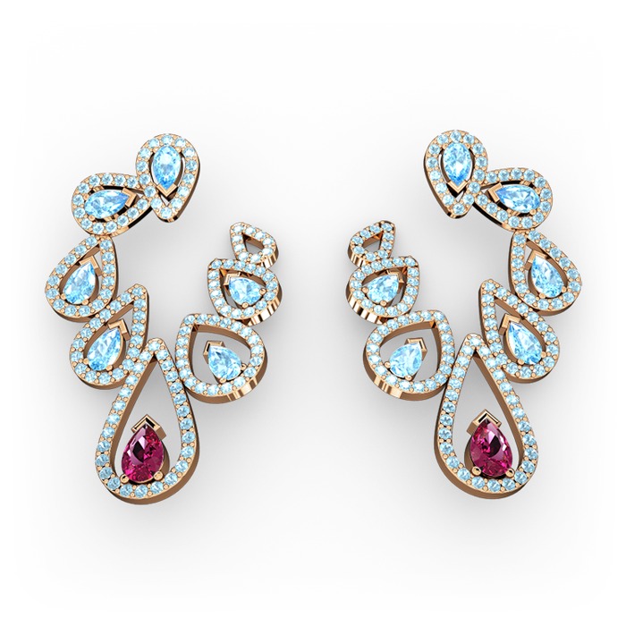 Rodolit garnet ve akuamarin 14 ayar rose altın küpe